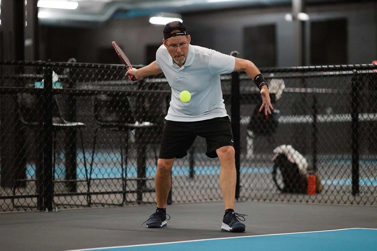 After the 2- bounce rule, getting to the net is the best strategy. If you can as a team get to the net you will most likely win the point. Why? You give far less time to your opponent when you return shots from the NVZ (kitchen) line. Get as close to the line as you can, racquet up, on your toes and ready, and you will be able to return shots and play as a team. You will be able to see each other and work together. If one stays back, you are leaving lots of the court open and your partner has no idea where you are and whether to play shots. While it takes practice to get comfortable, this is without a doubt the winning strategy in doubles pickleball.
